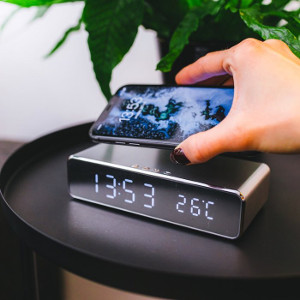 Vi gillar smarta julklappar och visst måste den här fina klockan ingå i den kategorin? QI laddstation gör det möjligt att ladda mobiltelefonen genom att endast lägga den på ovansidan. Observera att alla mobiler ej fungerar, så förvissa dig om personen som ska få julklappen har en mobil som fungerar att ladda genom QI.